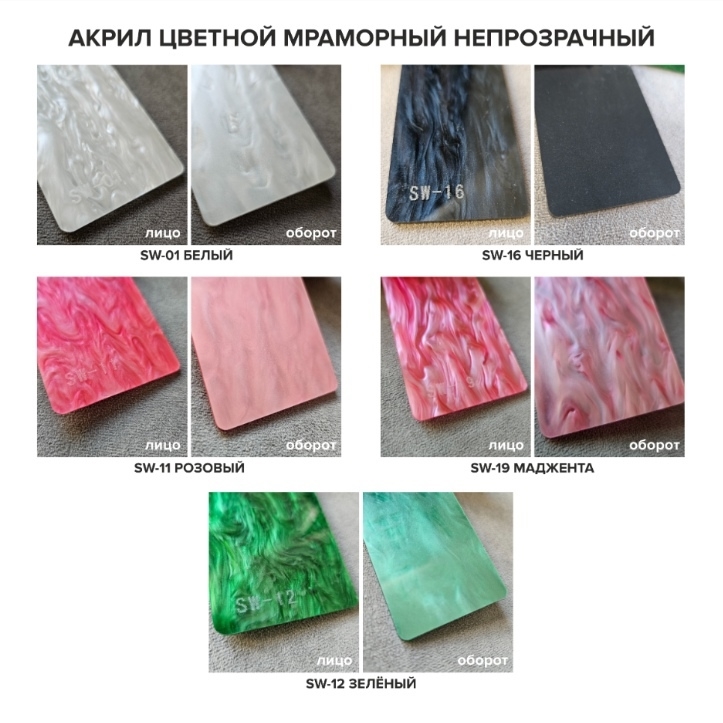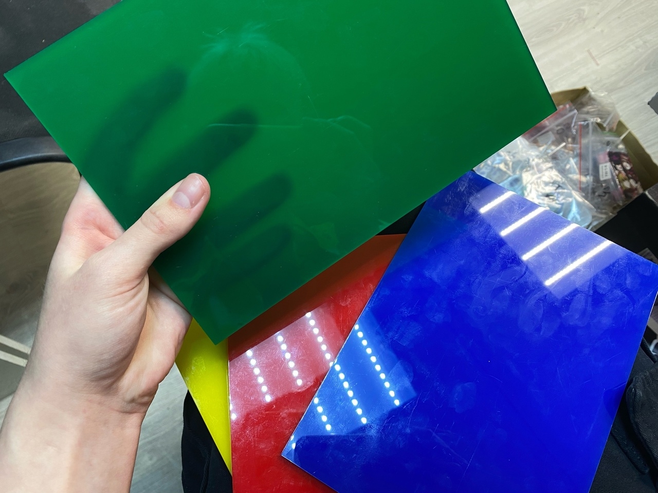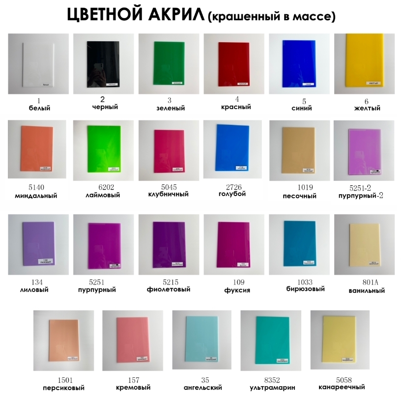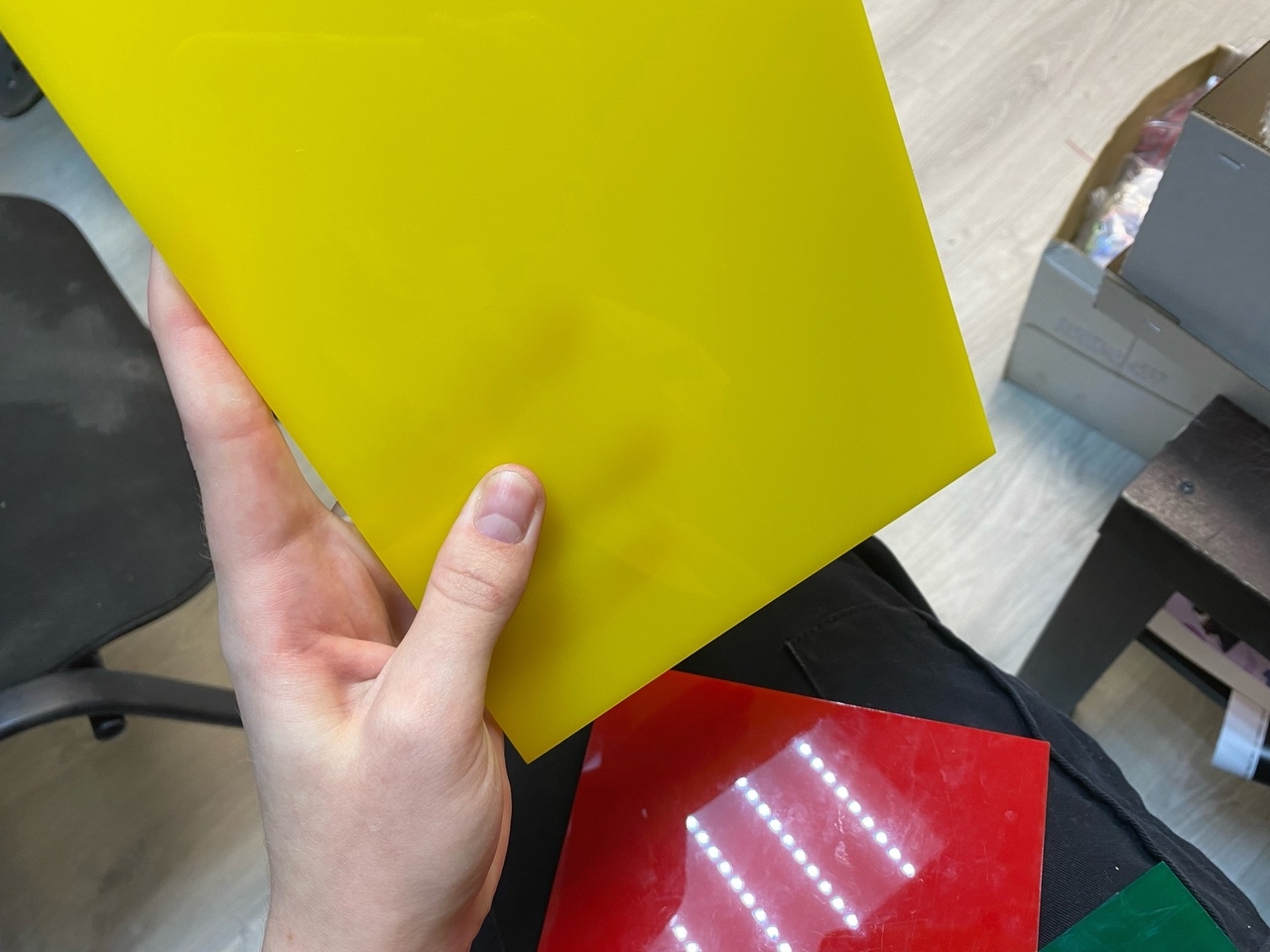 - Цветной крашенный в массе акрил на просвет (если подсвечивать лампой или сильно приглядываться) может немного просвечивать.